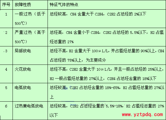 表2-1 判斷變壓器故障性質(zhì)的特征氣體特點(diǎn)