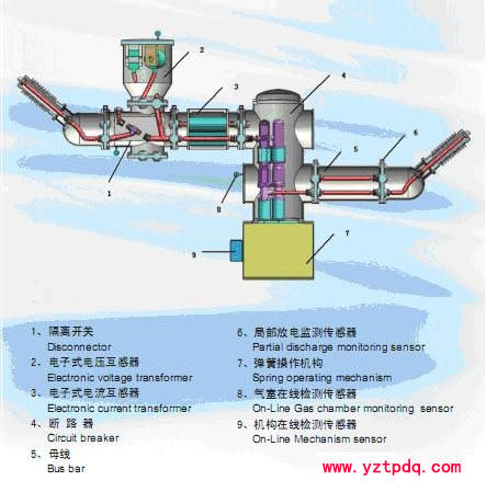 145kVGIS是一種數(shù)字型、緊湊型、智能型的組合電器。主要部分包括:智能終端、斷路器、隔離開關(guān)、接地開關(guān)、母線、電子式電壓互感器、電子式電流互感器、避雷器、進(jìn)出線系統(tǒng)等。