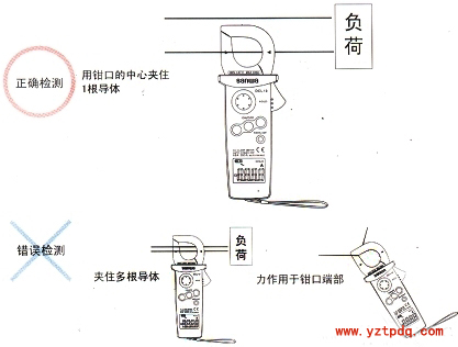 測量時,可以每相測一次,也可以三相測一次,此時表上數(shù)字應(yīng)為零,(因三相電流相量和為零),當(dāng)鉗口內(nèi)有兩根相線時,表上顯示數(shù)值為第三相的電流值,通過測量各相電流可以判斷電動機是否有過載現(xiàn)象(所測電流超過額定電流值),電動機內(nèi)部或(把其他形式的能轉(zhuǎn)換成電能的裝置叫做電源)電源電壓是否有問題,即三相電流不平衡是否超過10%的限度。