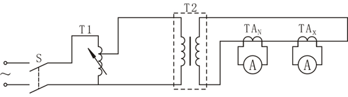 T1—單相調(diào)壓;T2—試驗變壓器;