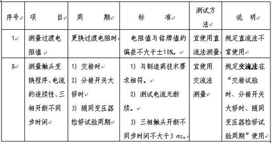 新標(biāo)準(zhǔn)的測量項(xiàng)目中有兩項(xiàng)試驗(yàn)需要使用到開關(guān)測試儀,項(xiàng)目1(測量過渡電阻值)和項(xiàng)目8(測量觸頭變換程序、電流的連續(xù)性、三相開斷不同步時(shí)間),以下對這兩項(xiàng)試驗(yàn)的測試方法、標(biāo)準(zhǔn)、周期做一比較: