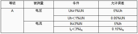 注:① UN為標稱電壓,Uh為諧波;IN為額定電流,Ih為諧波電流;② A級儀器頻率測量范圍為0~2500Hz,用于較精確的測量,儀器的相角測量誤差不大于±5°或±1°。B即儀器用于一般測量