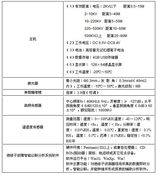 絕緣子故障偵測(cè)器產(chǎn)品技術(shù)指標(biāo)