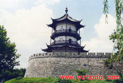 高郵城系北宋開(kāi)寶四年(971年)高郵軍知軍事高凝祐始筑,1972年該城基本拆除,唯保留東南122.7米一角。原高郵城周長(zhǎng)一十里三百一十六步,高二丈五尺,面闊一丈五尺。1985年進(jìn)行整修,1991年遭遇特大洪水侵襲,城墻坍塌,市政府撥款搶救維修。高郵城東南角上有始建于明天啟三年(1623年)的奎樓一座。