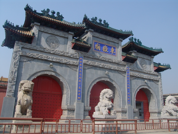 【建設(shè)現(xiàn)狀】恢復(fù)重建的東岳廟占地近30畝,現(xiàn)已建成山門(mén)、靈官殿、東岳寶殿、客堂、齋堂、鐘鼓亭等。山門(mén)于2006年10月完工,總投資100多萬(wàn)元,在全國(guó)來(lái)說(shuō)都不多見(jiàn)。山門(mén)兩側(cè)建有城隍殿、客堂、齋堂等配房。前殿(靈官殿)落成于1999年,內(nèi)部供奉道教靈官祖師(王靈官)以及青龍、白虎、朱雀、玄武四大神像。主體工程?hào)|岳寶殿建成于2003年,總投資600多萬(wàn)元,正面懸掛的巨幅牌匾由已故全國(guó)道協(xié)會(huì)長(zhǎng)閔智亭道長(zhǎng)題字。殿內(nèi)供奉東岳大帝、慈航、十大太保等。