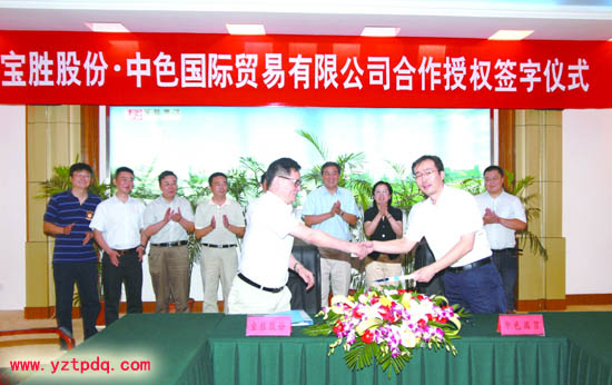 8月7日上午,寶勝股份和中色國際貿(mào)易有限公司合作授權(quán)簽字儀式在寶勝集團(tuán)舉行,中國有色礦業(yè)集團(tuán)有限公司副總經(jīng)理、中色國際貿(mào)易有限公司董事長兼總經(jīng)理李筱英,寶應(yīng)縣委書記、縣人大常委會主任仲生,寶勝集團(tuán)董事局主席楊澤元等出席簽字儀式。