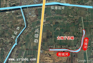 2014年12月4日,江蘇省紅樓夢學會會員陸守超,根據(jù)衛(wèi)星地圖結(jié)合史料記載,在儀征經(jīng)濟開發(fā)區(qū)(新城鎮(zhèn)東南)越江村或東升村境內(nèi),發(fā)現(xiàn)疑似古揚子縣城的東城河和南城河遺存。古揚子縣城就位于當中焦莊組、曹莊組和邵莊組一帶。在古揚子縣城遺址的東北角還發(fā)現(xiàn)了都天廟遺址。